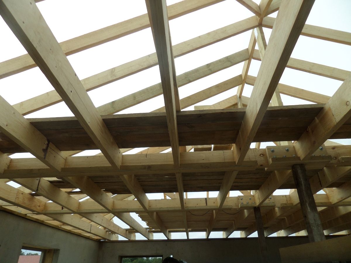 Скатная крыша выполняется по деревянным стропилам, далее крепится ветро-влагозащитная мембрана, обрешетка и контробрешетка. В зависимости от Ваших пожеланий и архитектурных решений, устраивается финишное покрытие. Самыми распространенными являются металлочерепица или мягкая битумная черепица.
