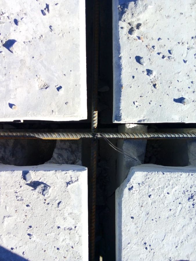 Соединение стеновых панелей между собой производится путем замоноличивания тяжелым бетоном мест стыковки внутреннего несущего слоя. Для связи стеновых панелей между собой на горизонтальных торцах несущего слоя с шагом 400-500 мм закладываются стальные тросовые петли финского производителя Peikko Group. При установке стеновых панелей рядом, тросовые петли соседних панелей пересекаются, образуя узел, в который вставляется арматура.