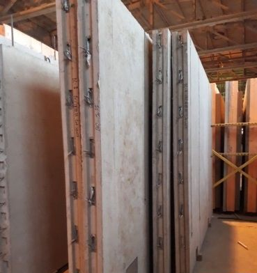 Внутренние несущие железобетонные стеновые панели производятся на том же оборудовании, что и трехслойные наружные панели. Они состоят из одного слоя тяжелого бетона класса В25 и стальной арматуры. Толщина внутренних несущих панелей, в зависимости от проектных решений, составляет от 120 до 180 мм. Проемы во внутренних несущих стенах, также как и в наружных, можно сделать прямоугольными, арочными или другой формы.