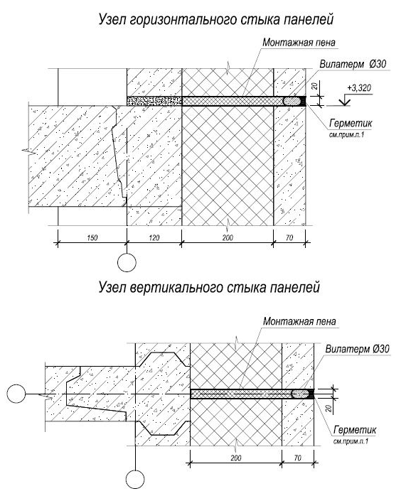 После замоноличивания, внутренний несущий железобетонный слой полностью исключает проникновение в дом влаги и ветра с улицы, в промежуток между утеплителем, устанавливается полоса из минеральной ваты либо это место заполняется монтажной пеной. Затем в створе наружного железобетонного слоя вставляется жгут из вспененного полиэтилена и сверху наносится герметик для межпанельных швов, который можно окрасить в цвет фасада. В отличие от многоэтажных домов, для наших домов мы делаем швы шириной всего 20-25 мм.