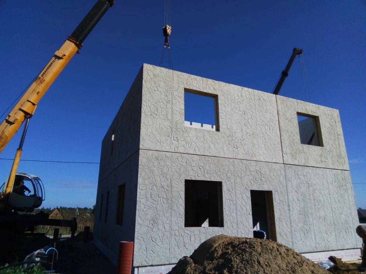 Данная технология монтажа стеновых панелей также используется при строительстве современных многоэтажных панельных домов, и поправу считается самой передовой в отрасли. Стеновые панели практически не дают усадки, и к внутренней отделке можно приступать сразу после окончания строительно-монтажных работ.