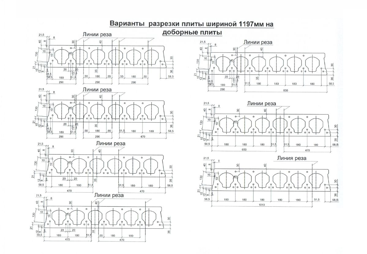 Помимо стандартной ширины, плиты ПБ могут быть разрезаны вдоль на доборные плиты (размерами 290, 470, 650, 830, 1010 мм). Кроме того, плиты ПБ могут быть разрезаны по диагонали без потери несущей способности.